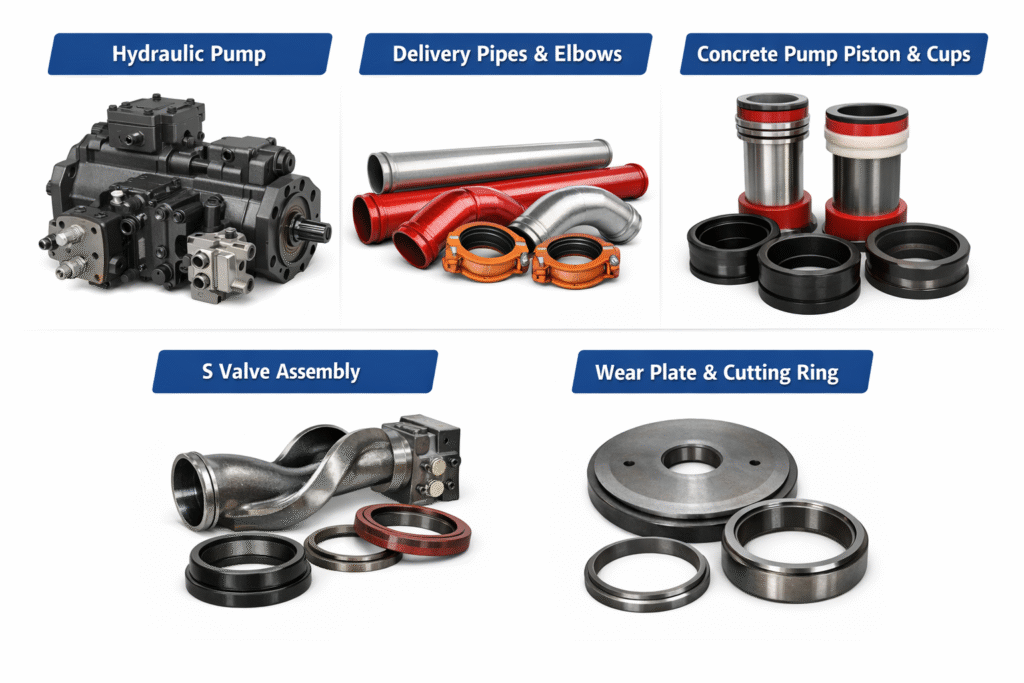Concrete pump trucks are critical assets on construction sites, and any unexpected downtime can cause serious delays and financial losses. For distributors, contractors, and fleet owners, keeping the right concrete pump spare parts in stock is essential to ensure smooth operations and fast maintenance.